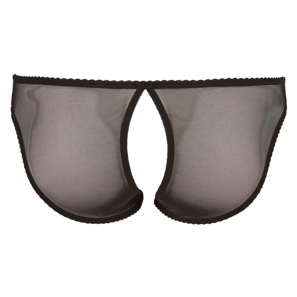 EAN:Schwarzer Powernet-Slip mit Stickerei in der Front und total offenem Schritt.