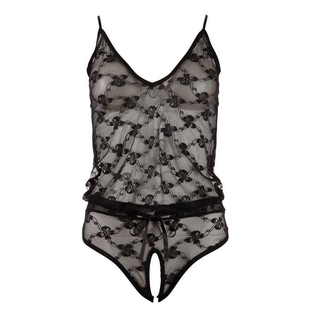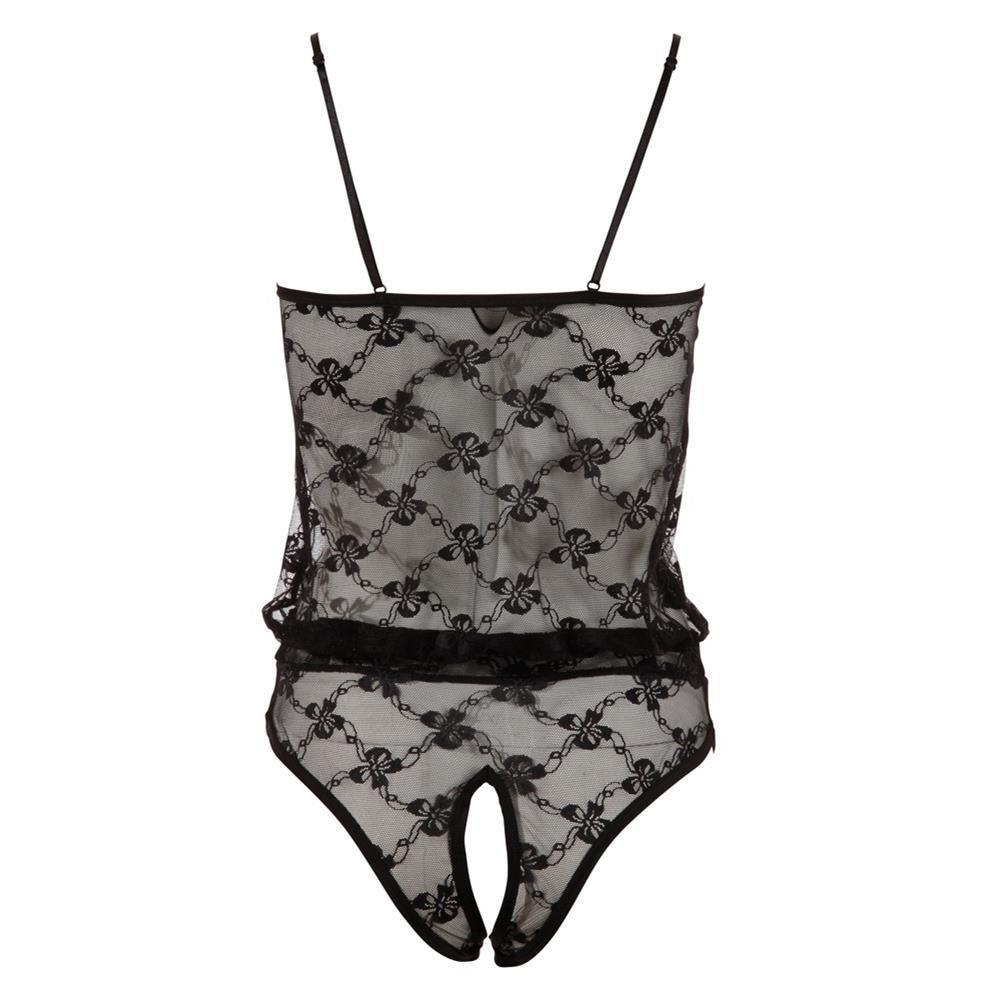 EAN:Komplett aus Spitze gefertigter Body mit verstellbaren Trägern, Tunnelzugbund um die Taille und offenem Schritt.