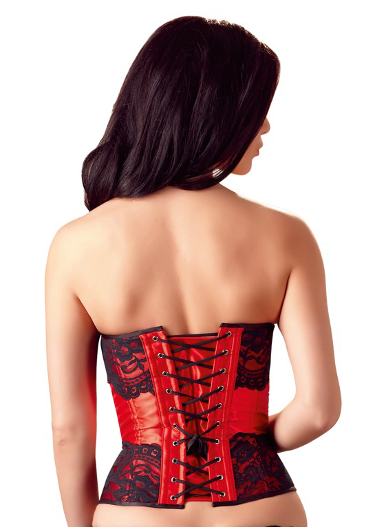 6 1/2 eingearbeitete Formingstäbchen pro Seite. Hakenleiste vorne, Zierschnürung hinten (nicht zur Taillenreduktion geeignet!). 80% Polyester, 20% Polyamid. Mit Innenfutter: 100% Polyester.